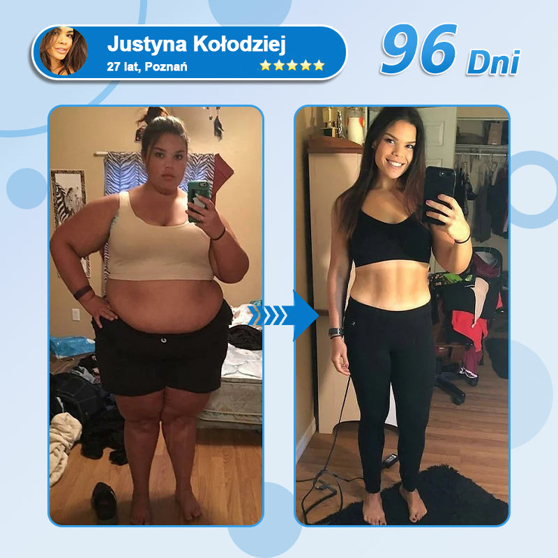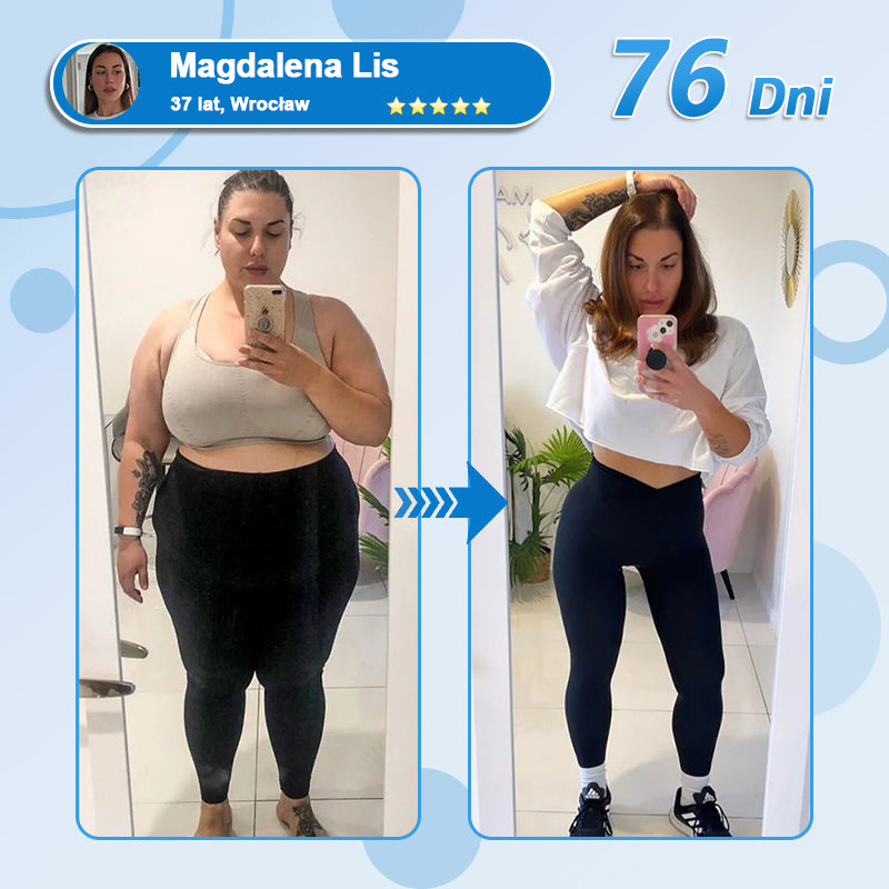 Tak jak się spodziewałam, w ciągu pierwszych dwóch tygodni nie doświadczyłam żadnego dyskomfortu.Wyniki były bardzo stabilne i stopniowe.Pomogło mi to powoli kontrolować apetyt, zauważyłam, że mój metabolizm znacznie się przyspieszył, trawienie poprawiło się, a uczucie sytości trwało dłużej.Po około 3 pudełkach, w ciągu 9 tygodni, schudłam z 88 do 52 kilogramów.Rezultaty były jeszcze szybsze niż te, które czytałam o tradycyjnych zastrzykach!To dlatego, że ZdrowyStyl® jest skuteczniejszy i łatwiej jest trzymać się planu leczenia.