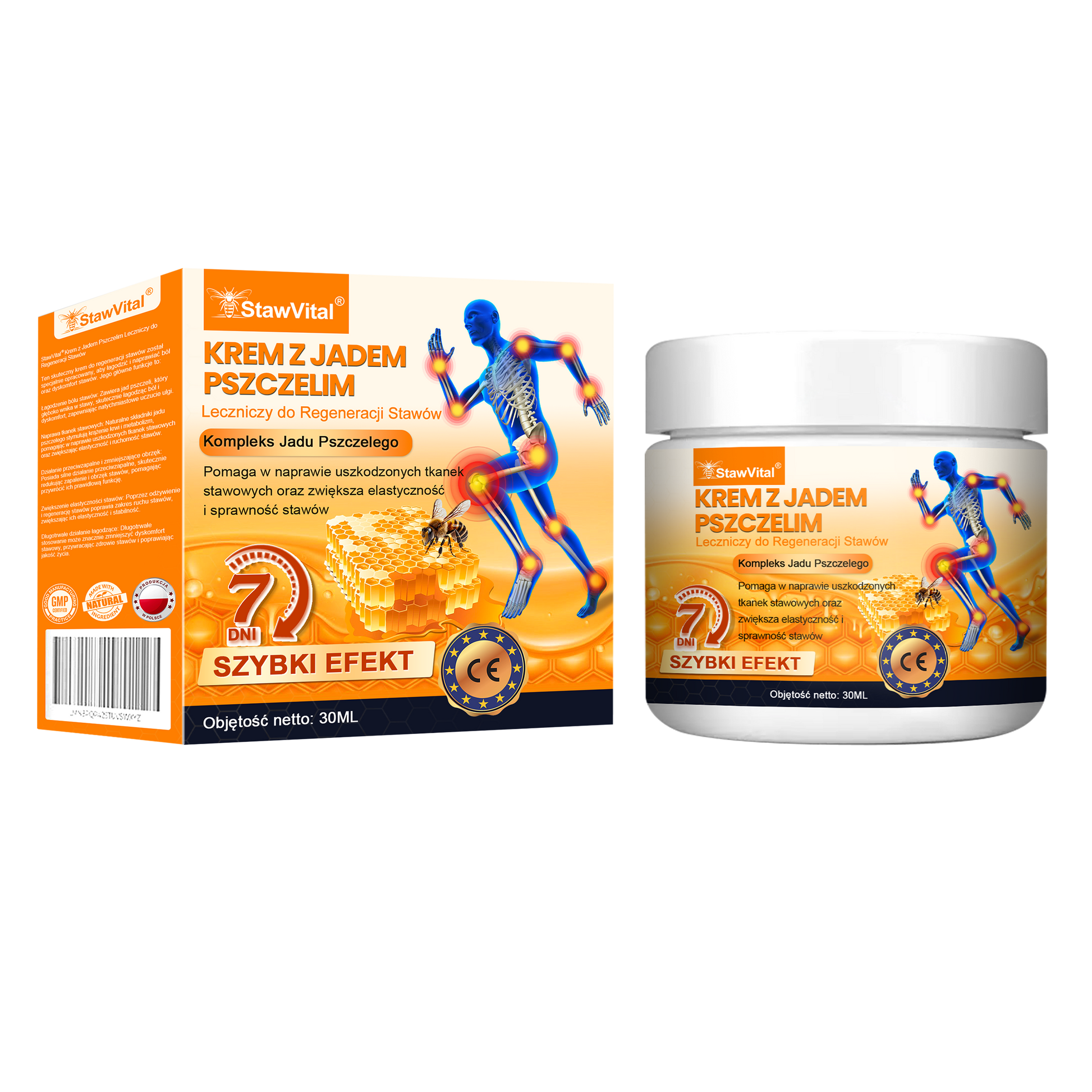 Krema Stawital® zawiera naturalny pszczeliny, która efektywnie poprawia elastyczność stawów. Aktywny składnik "peptyd pszczeliny" głęboko penetruje stawy, ulgi z wysuszeniem i niepohodzie spowodowaną zapaleniem, pomagając przywrócić mobilność stawów. Z czasem, efekty antyinflamacyjne pszczeliny kontynuują promowanie produkcji płynu stawowego, zapewniając lepsze smarowanie stawów, zmniejszając tarcie i znacznie poprawiając elastyczność stawów w ciągu 7 dni.